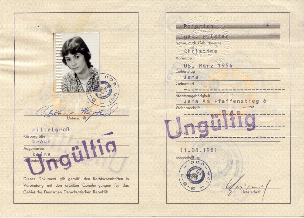 Identitätsbescheinigung Christine Reiprich - man beachte den Strich bei "Staatsbürgerschaft"...